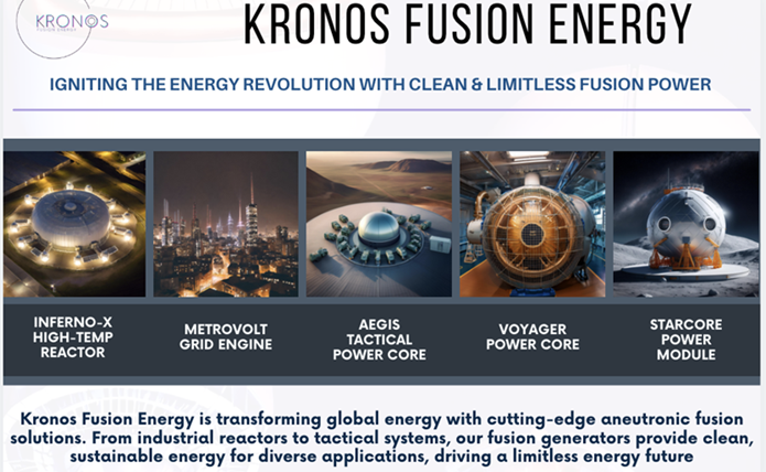 Kronos Fusion Energy Unveils Groundbreaking Fusion Products and Industry-Wide Capabilities Washington, D.C., September 25, 2024 – Kronos Fusion Energy, a global leader in aneutronic fusion technology, today unveiled its groundbreaking suite of five fusion energy products, designed to revolutionize the energy industry. These innovations will drive the production of over 100 fusion energy generators annually starting in 2035. Each product…
