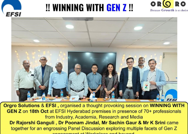 Orgro Solutions (www.orgro.world), in association with Employers Federation of South India (EFSI), organised an engaging session on ‘Winning with Gen Z: Connect-Engage-Lead’ on 18th Oct at EFSI Hyderabad. The inaugural address was delivered by Shri SV Ramachandra Rao, Chairman -EFSI and Founder Director of Resource Inputs Pvt Ltd , one of the senior most HR practitioners in Hyderabad. The program…